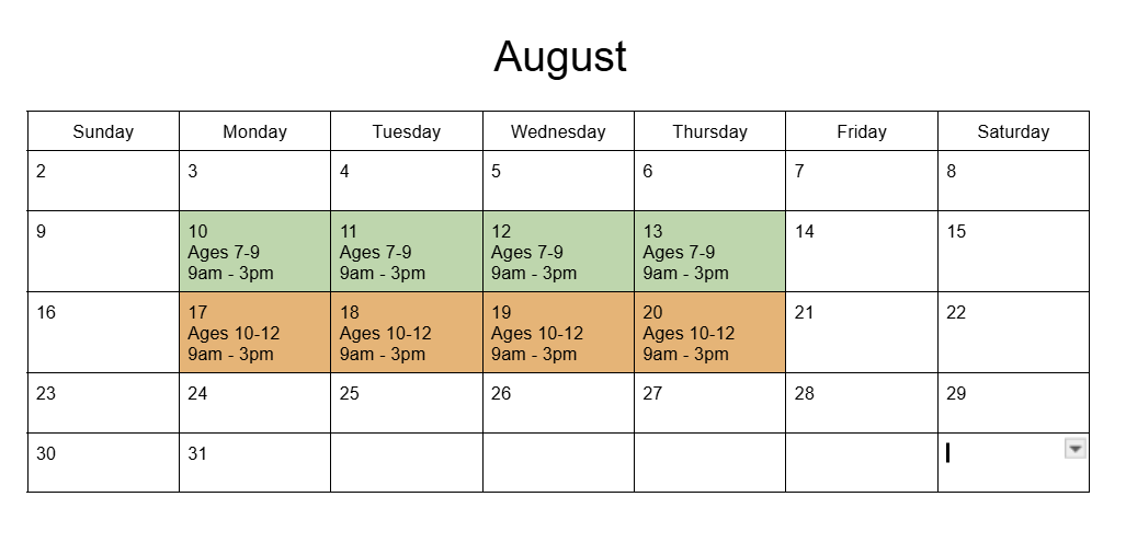 Ages 7-9 - Aug. 10th - 13th. 9:00 am - 2:30 pm: $350 +GST