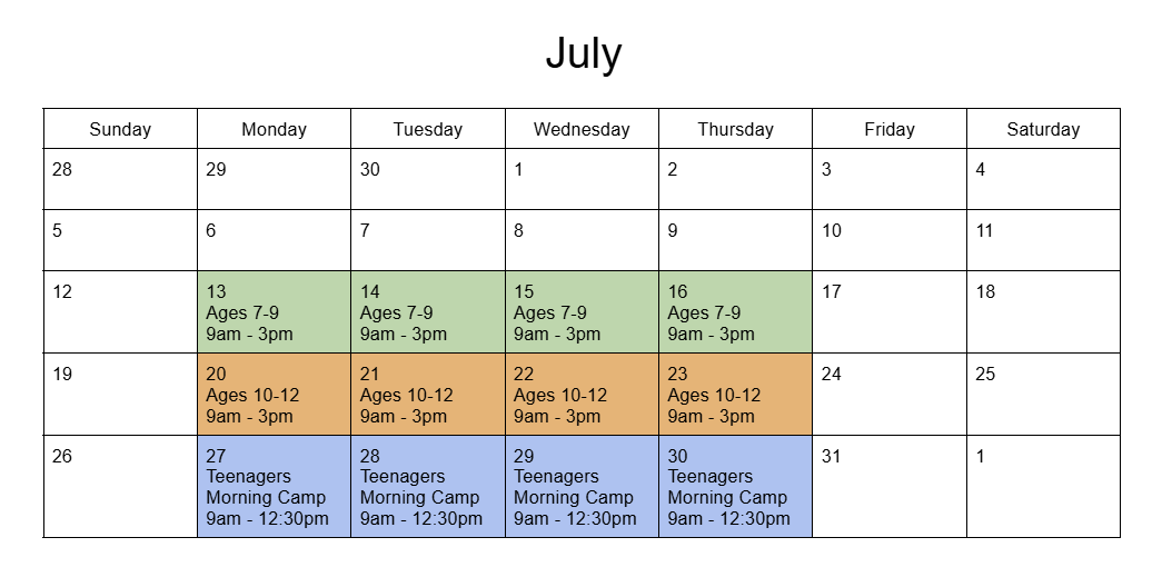 Ages 7-9 - July 13th -16th. 9:00 am - 2:30 pm: $350 +GST